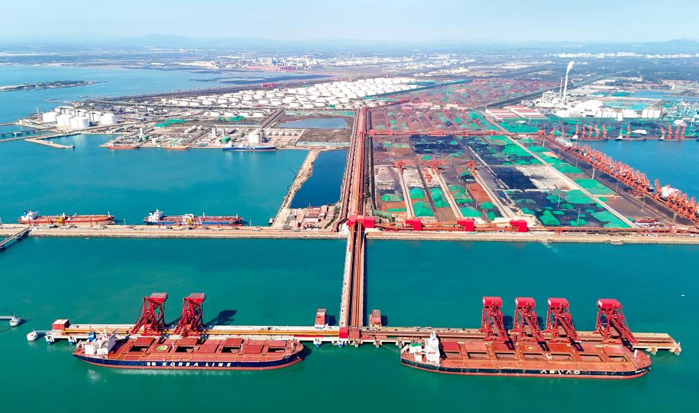 全國(guó)首個(gè)40萬(wàn)噸干散貨數(shù)智碼頭在山東港口青島港投產(chǎn)
