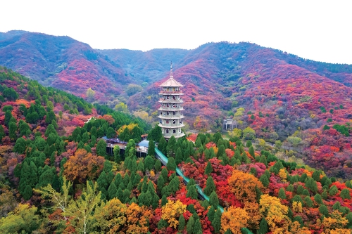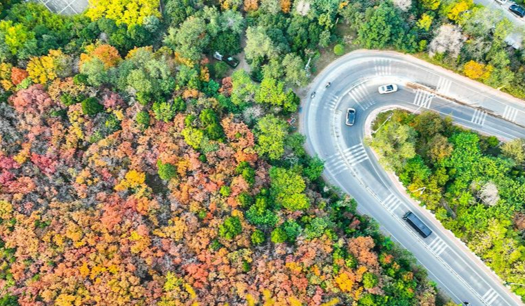 深秋時(shí)節(jié),濟(jì)南西部城區(qū)紅葉漫山